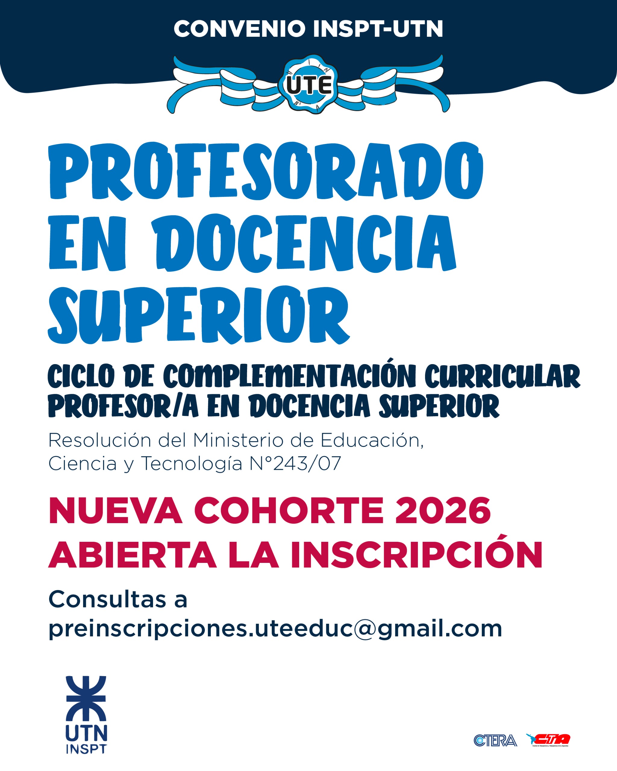 CONVENIO UTE – UTN «Profesorado en Docencia Superior» En el…