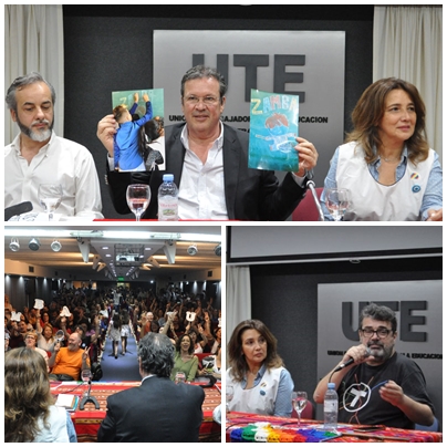 Por la tarde en el marco del último encuentro de Formación Sindical, la UTE recibió al flamante Ministro de Cultura de la Nación, Tristán Bauer, impulsor de Canal Encuentro, de Paka Paka y de Zamba, que tantas veces acompañó a nuestrxs estudiantes y a lxs docentes. Bauer también es el director de la película “El camino de Santiago” y del documental “Tierra Arrasada”. Lxs delegadxs unánimemente le reclamaron al ministro la vuelta de Zamba a la televisión pública. Compartieron el panel de la tarde el secretario General de SUTEBA y secretario Adjunto de CTERA, Roberto Baradel y el nuevo responsable de Tecnópolis, el compañero Ricardo Ferraro.